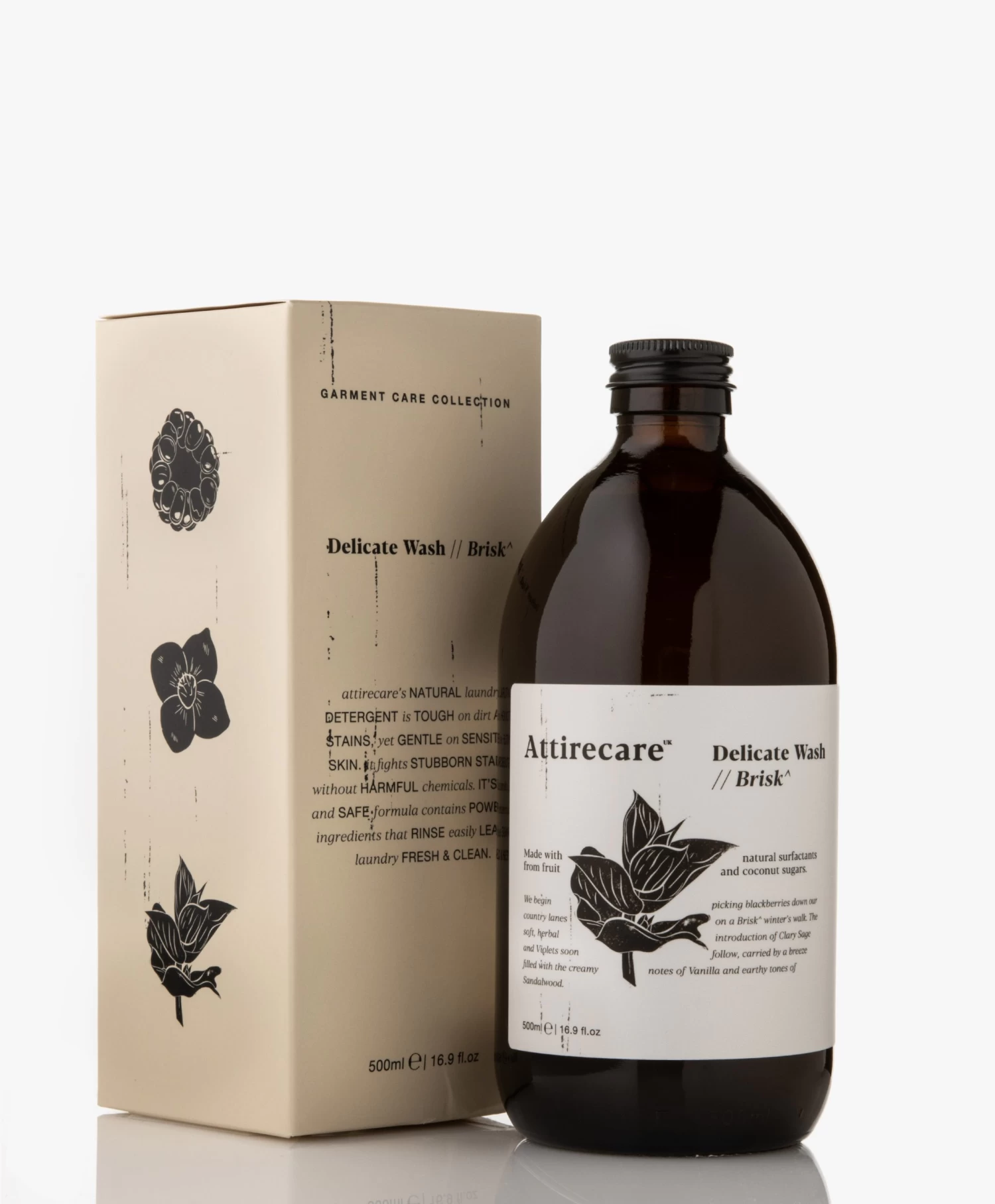 Krachtig tegen vuiligheid en vlekken, maar zacht voor je gevoelige huid – deze Delicate Wash van Attirecate is het wasmiddel dat je nodig hebt en deze komt met de heerlijke Brisk geur. Deze geur is een combinatie van braam, vanille, salie, viool en sandelhout en doet de makers denken aan thuis, de Britse Countryside. Het wasmiddel is ontwikkeld zonder schadelijke chemicaliën en heeft een veilige formule met krachtige natuurlijke ingrediënten en essentiële botanische producten voor een frisse en schone was.
