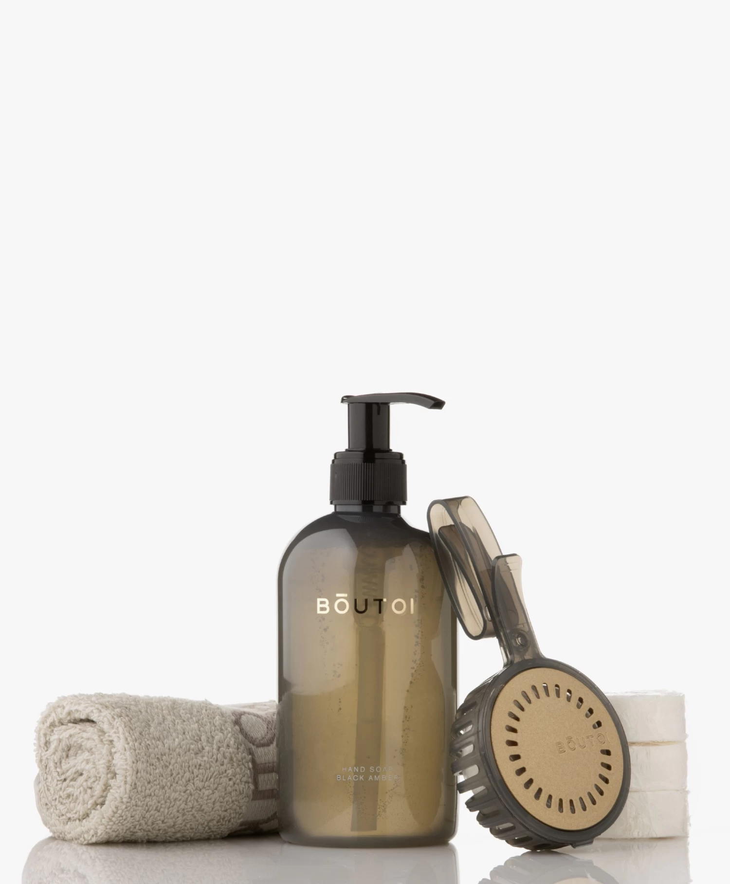 Geef jouw badkamer of toilet een luxueuze en verfijnde geurboost met deze Refresh giftbox van Boutoi in de geur Black Amber. Deze complete set biedt alles wat je nodig hebt voor een fris sanitair met een luxe vibe. Bevat een pompje vloeibare handzeep met Black Amber geur, een beige Boutoi gastendoekje, een transparante toiletblokhouder met goudkleurig detail en 3 navulblokjes in bijpassende geur.ย Leuk om te geven, te krijgen รณf jezelf cadeau te doen.ย