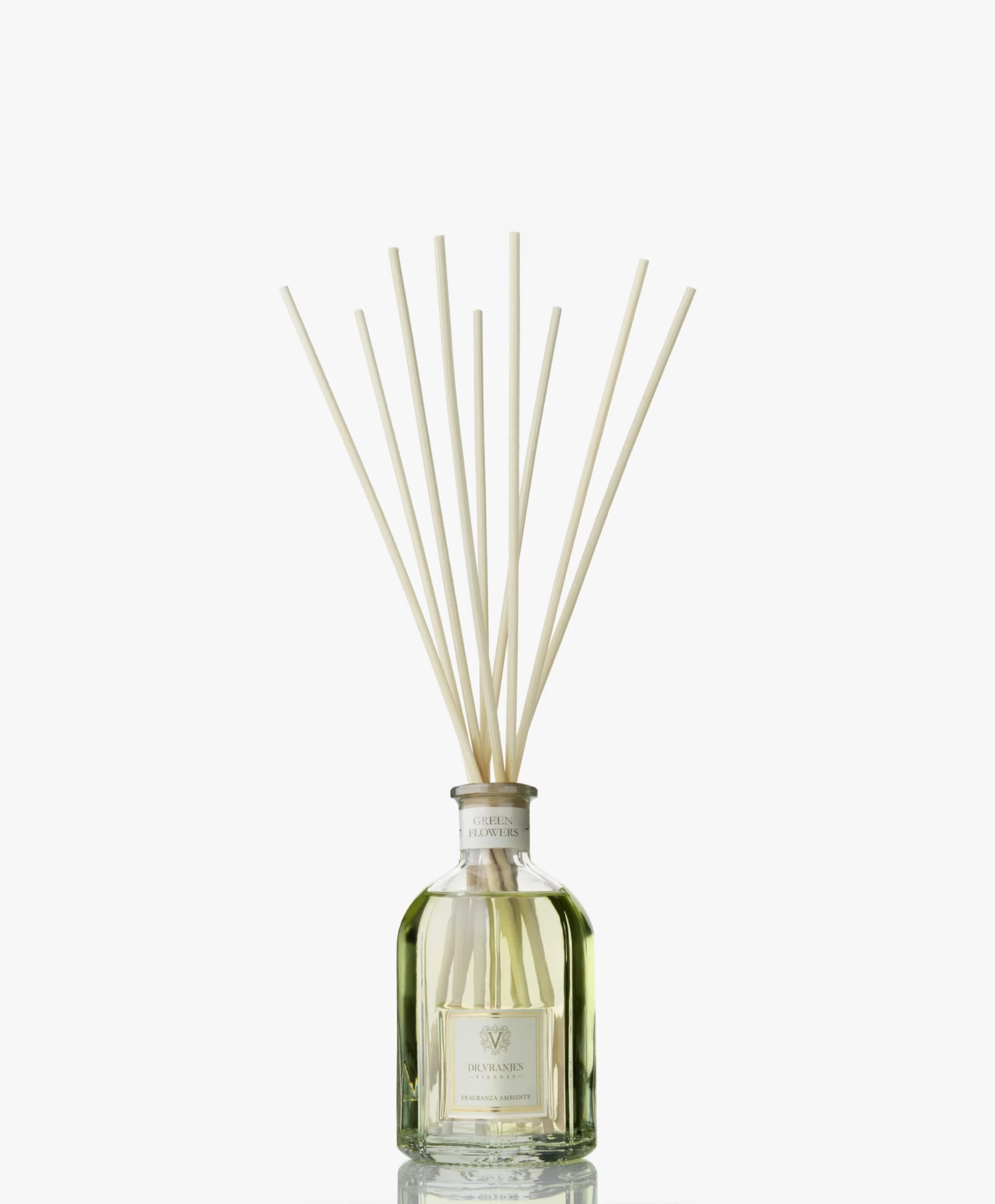 Breng warmte, comfort en luxe naar je huis met deze Dr. Vranjes geurstokjes in de delicate en unieke geur Green Flowers. Een frisse geur waarin groene theebloemen, citrusbloemen de boventoon voeren – een harmonieuze geur die ontspant en verwelkomend aanvoelt. De geurstokjes zijn geproduceerd met natuurlijke ingrediënten en verfijnde essentiële oliën afkomstig uit de Toscaanse regionen rondom Florence, die gepresenteerd worden in handgemaakte glazen flacons met een klassieke doch eigentijdse vormgeving.