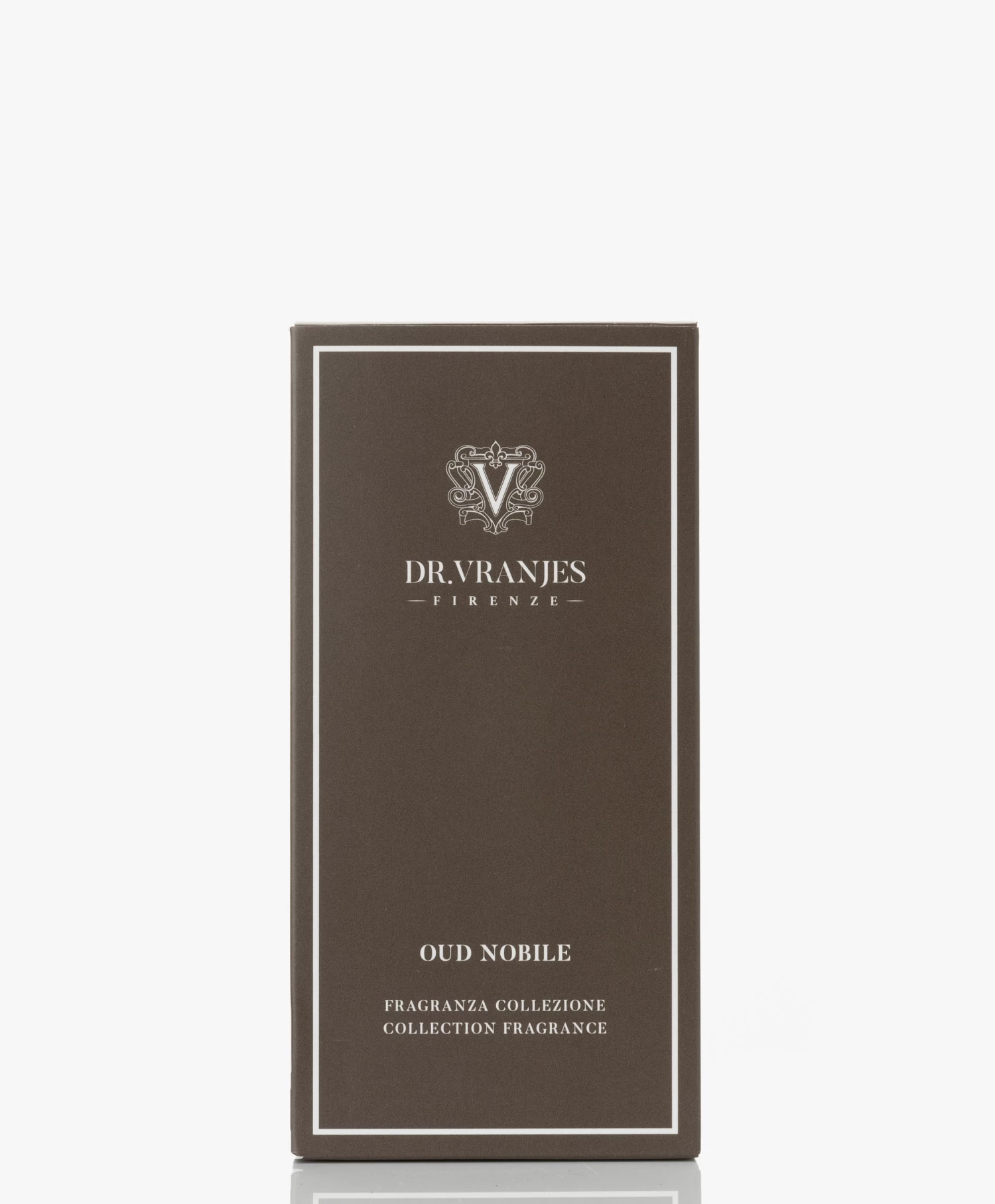 Breng warmte, comfort en luxe naar je huis met deze Dr. Vranjes geurstokjes in de delicate en unieke geur Oud Nobile. Een houtachtige geur waarin oudh (ook wel ‘het hout der goden’), wierook en mirre zich mengen met verkwikkende bergamot – geïnspireerd op een herinnering waarin tijdens een oudh-ritueel de geur van oudh-hars werd ingeademd en een buitengewone emotie ontstond. De geurstokjes zijn geproduceerd met natuurlijke ingrediënten en verfijnde essentiële oliën afkomstig uit de Toscaanse regionen rondom Florence, die gepresenteerd worden in handgemaakte glazen flacons met een klassieke doch eigentijdse vormgeving.