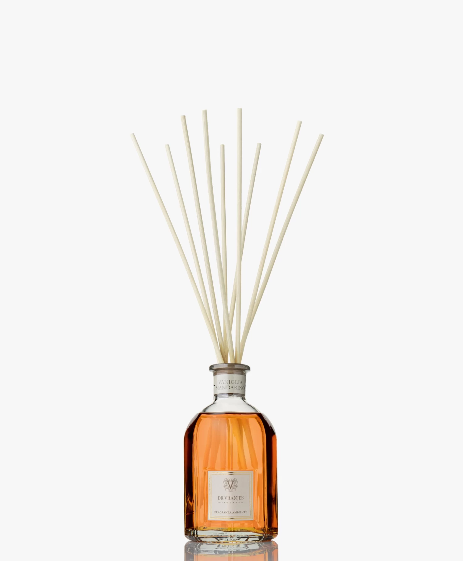 Breng warmte, comfort en luxe naar je huis met deze Dr. Vranjes geurstokjes in de delicate en unieke geur Vaniglia Mandarino. Een zoete en zachte geur waarin vanille, tonka boon en frisse noten mandarijn de boventoon voeren – de geur voelt als een ontspannen omhelzing. De geurstokjes zijn geproduceerd met natuurlijke ingrediënten en verfijnde essentiële oliën afkomstig uit de Toscaanse regionen rondom Florence, die gepresenteerd worden in handgemaakte glazen flacons met een klassieke doch eigentijdse vormgeving.
