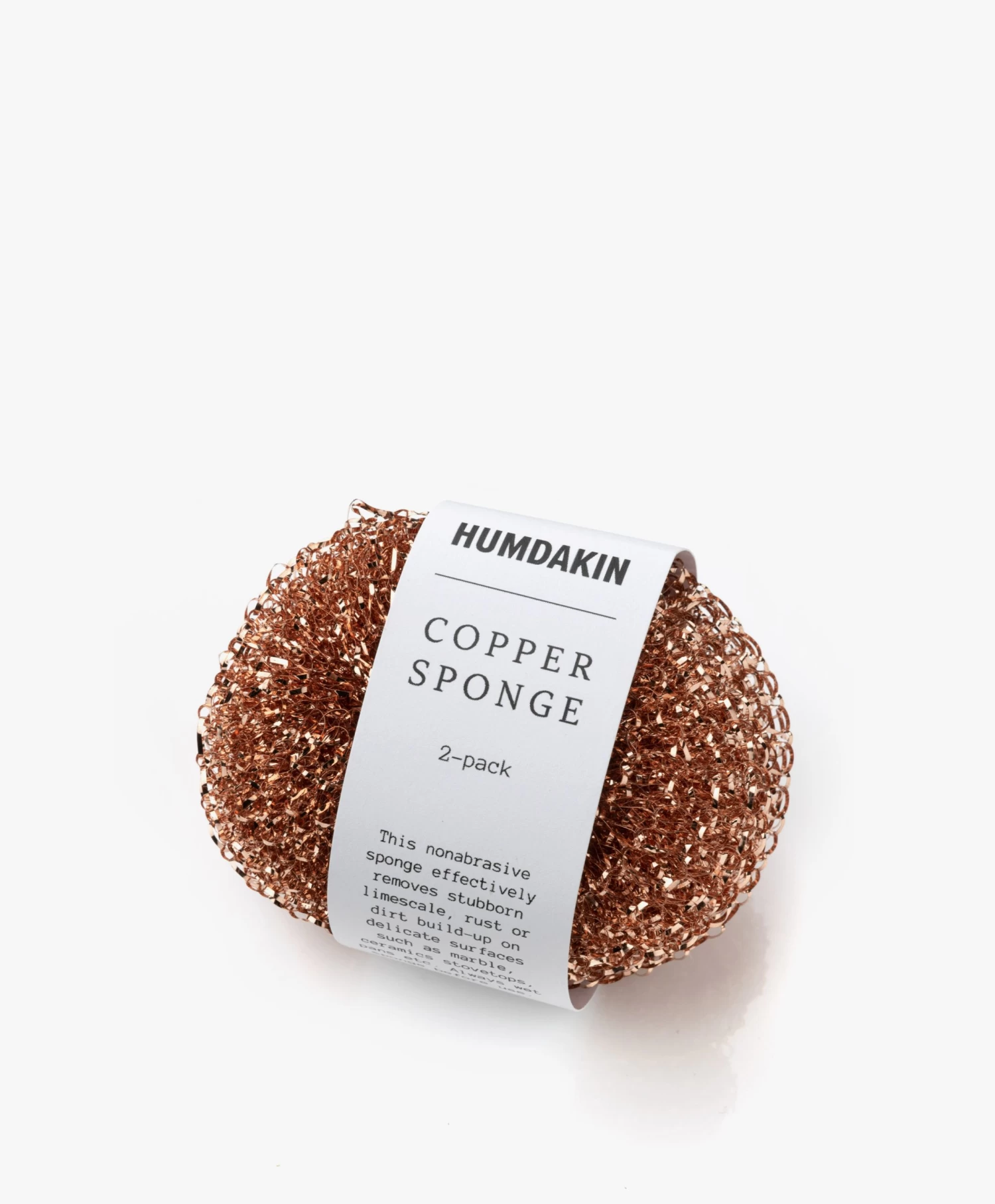 De Copper Sponge van HUMDAKIN maakt op zachte, doch effectieve wijze schoon zonder de toevoeging van chemicaliën. De kopersponzen zijn perfect te gebruiken voor potten, pannen, gootstenen en staal om zowel viezigheid als roest te verwijderen. Deze kopersponzen zijn gemaakt van fijne koperdraden die op zachte wijze, hardnekkig vuil verwijderen. Koper is een metaal dat geen beschadigingen achterlaat op oppervlaktes.