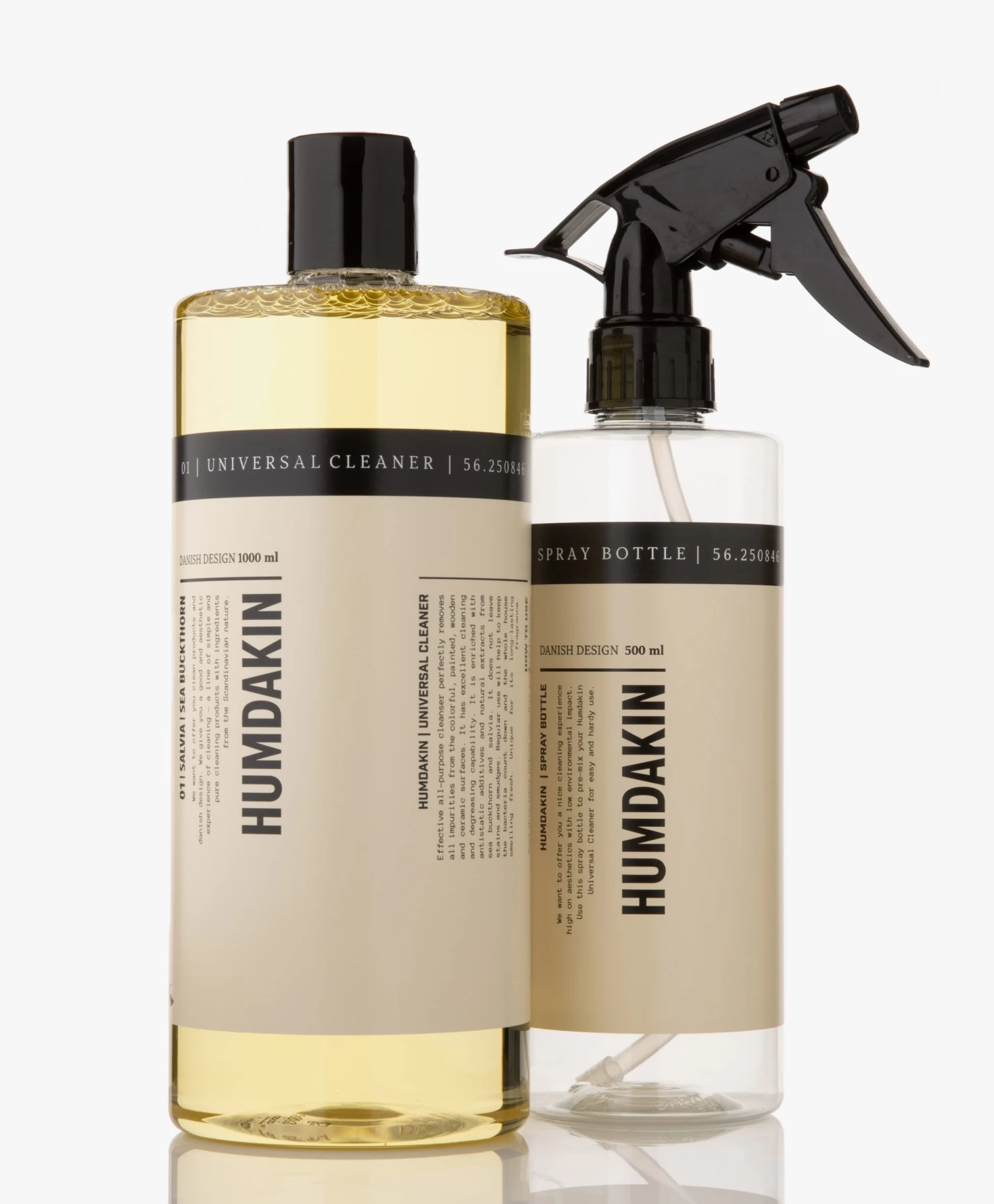 Gooi al je excuses over boord, want met HUMDAKIN’s Cleaning Kit wordt schoonmaken een (duurzaam) feestje. Met deze set – voorzien van 1 liter geconcentreerde allesreiniger en een sprayfles – heb je namelijk maar liefst 100 liter aan allesreiniger te pakken. De reiniger verwijdert vuil van alle oppervlakken die water kunnen verdragen en is verrijkt met natuurlijke extracten van duindoorn en salie voor een milde schoonmaakervaring met een delicate geur die subtiel is, maar wel lang blijft hangen.