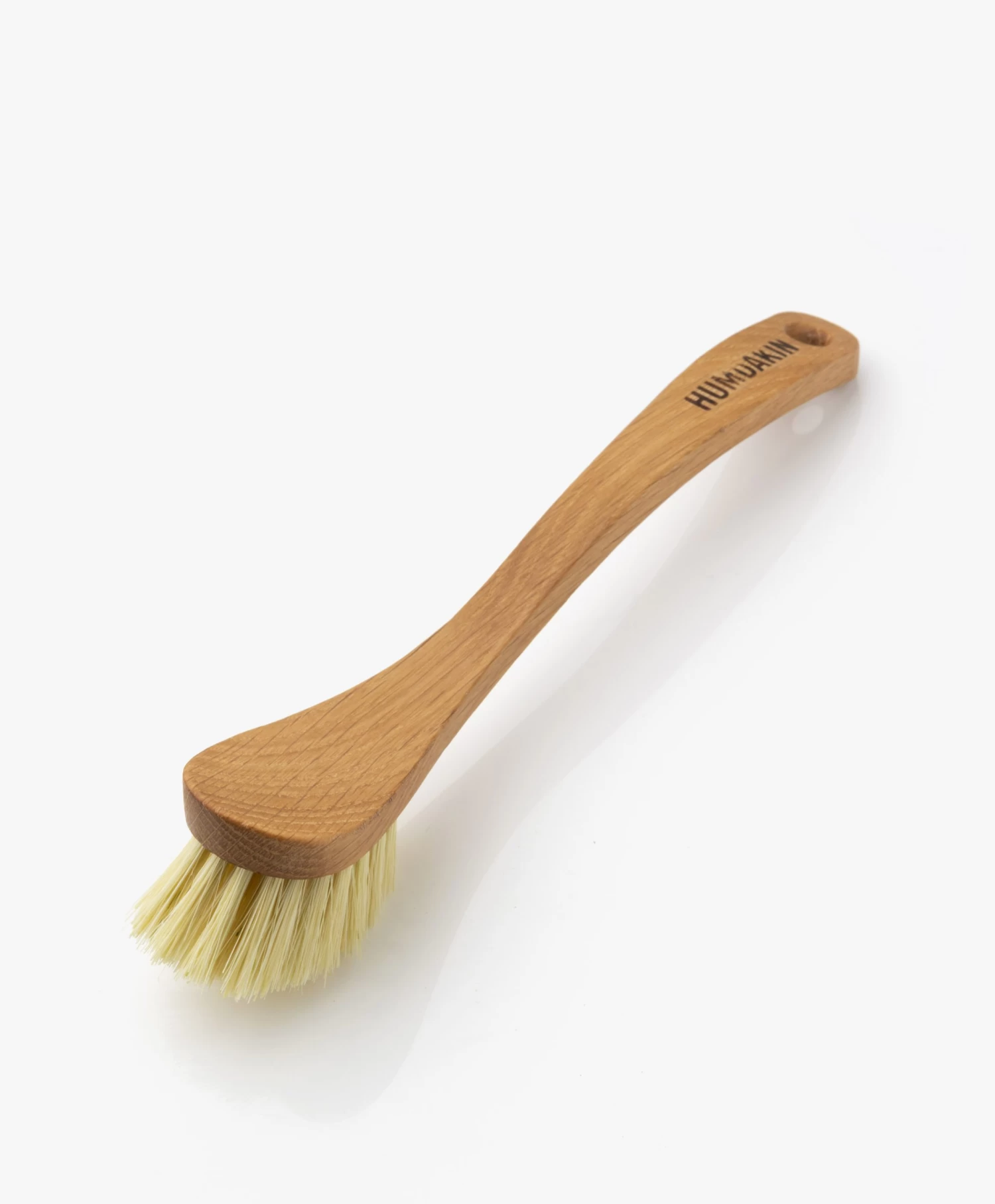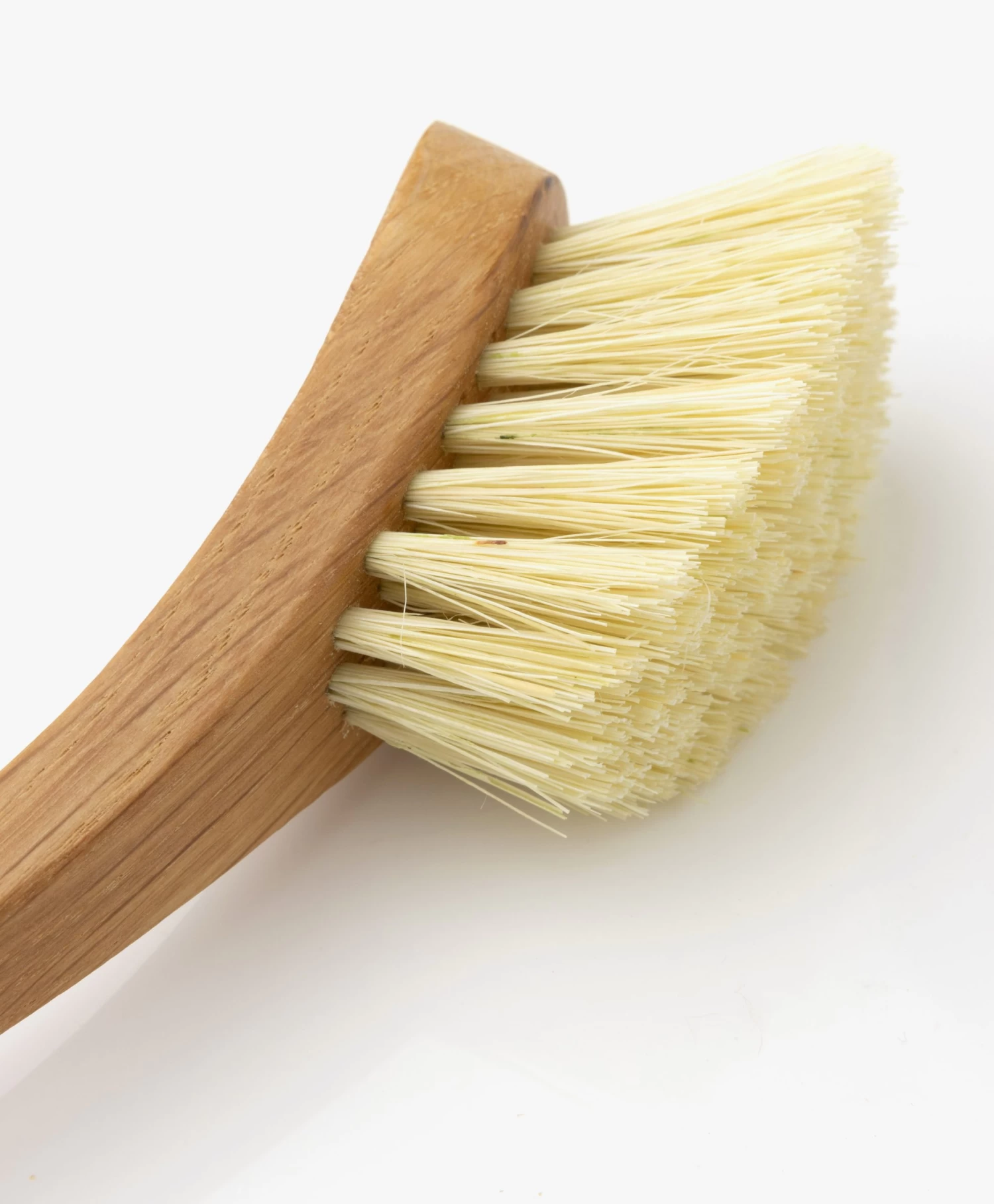 Hoe te onderhouden: Maak de borstel schoon met warm water en afwasmiddel en laat luchtdrogen met de borstel gericht naar boven. Onderhoud de houten hendel nog beter door af en toe in de smeren met kookolie.